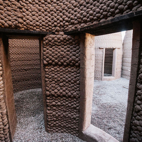 The Skylos at the Frontier Drive-Inn straddle ancient and speculative technologies. Made from sand and clay sourced from artist and architect Ronald Rael's family farmland in La Florida, Colorado, these adobe structures create a profoundly imaginative sculptural environment directly attuned to the surrounding land and history.